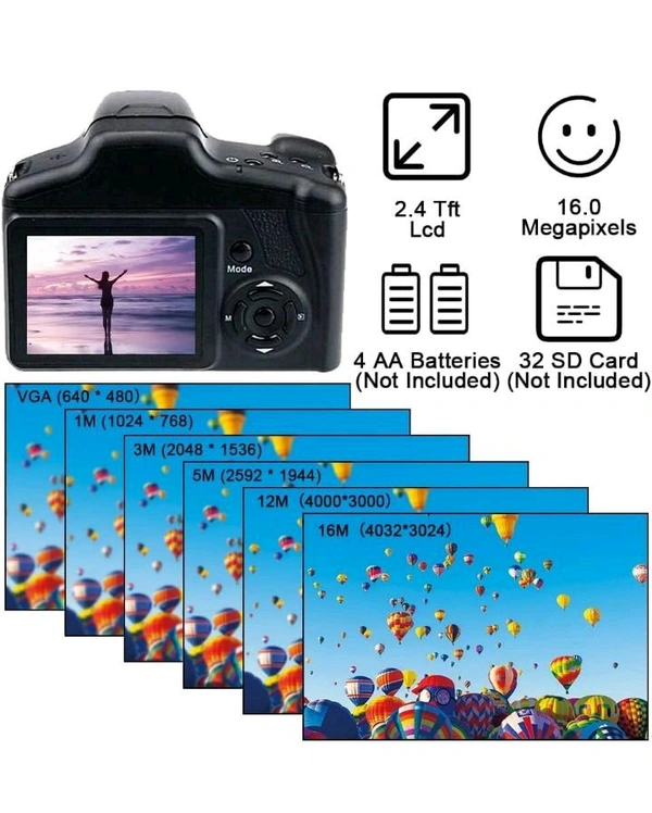 - GREAT CAMERA QUALITY FOR BEGINNERS AND KIDS: This photo camera with an infrared lens and a 2.4-inch TFT LCD 320 * 240 pixel screen and 16.0 megapixels will help you capture the most exciting and unforgettable moments with high quality pictures or videos. it is exactly what you need, you can have fun and record wonderful times with friends, family members and classmates.